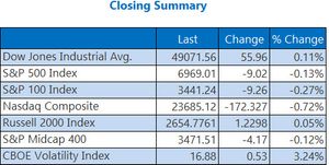 The S&P 500 settled lower on Thursday as Microsoft shares sold off amid slowing cloud growth and soft margin guidance, which triggered a triple-digit loss for the tech-heavy Nasdaq as software stocks struggled.